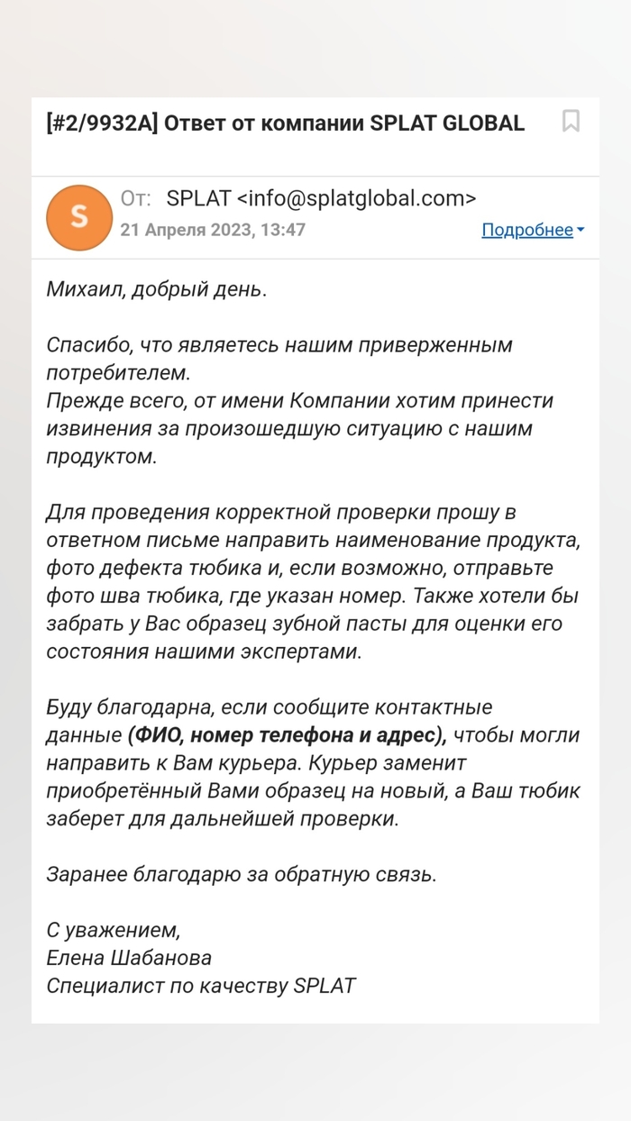 Ну думаю ладно, возможно все таки я сам себе верблюд и действительно как то так ввел, связался с поддержкой по телефону из письма, меня уведомили, что да, отказ был сделан. Попросили продиктовать номер и заверили, что сейчас по заявке еще раз со мной свяжутся. Минут через 30 позвонила оператор Елена, и просто повторила, "Отказ от заказа мы сделали, возврат средств оформили, т.к. не смогли связаться - указывайте корректные данные в заявке."