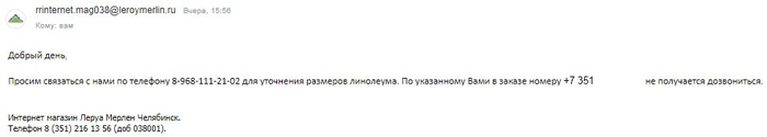 Leroy Merlin Челябинск, как оплатить товар и получить отказ заказа и возврат средств когда-нибудь попозже =/