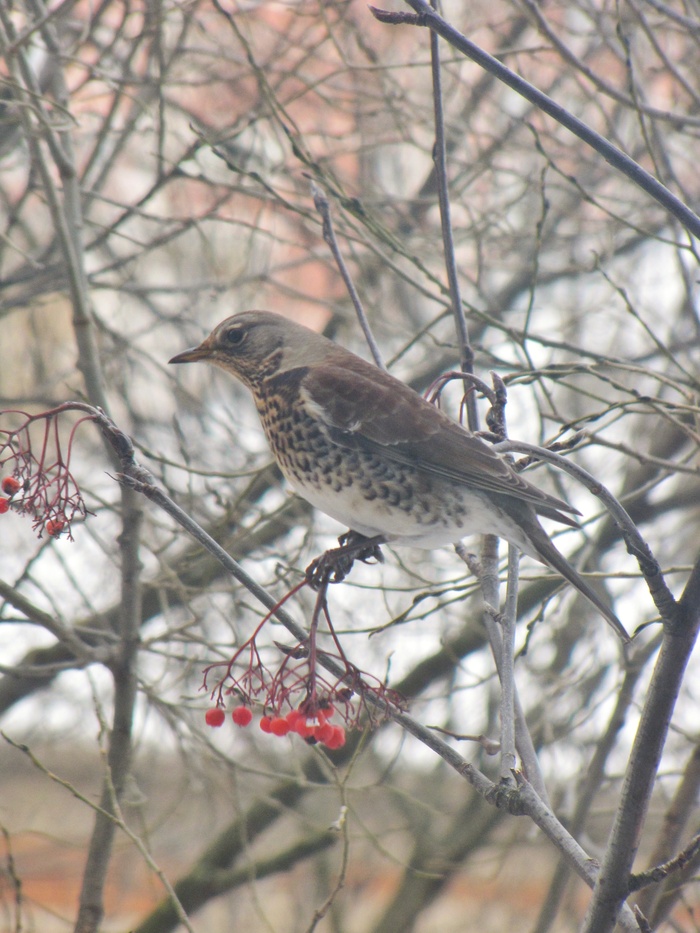 Пришла пора подкармливать птиц. Обычно это синицы, снегири, два поползня, которые живут на соседнем дереве, изредка свиристели.
