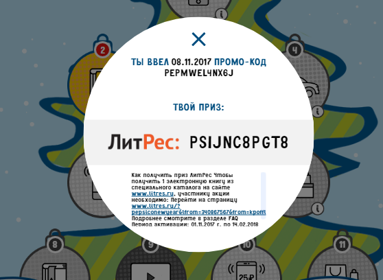 Промокод под крышечкой....