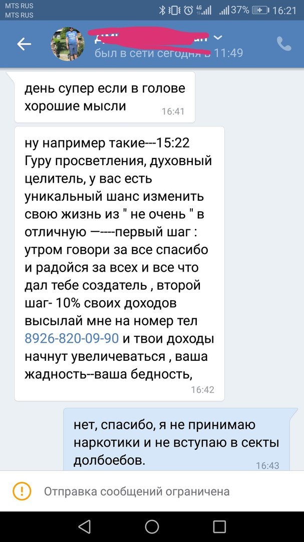 3. Проходит рядом довольно крупный слет среди дам разных возрастов и городов, представляющих одну крупную секту компанию, примерно раз в полгода. Дамочки, искренне желающие поучаствовать в этом шабаше мероприятии, шли на все, чтобы как можно больше сэкономить на номере, то есть спать по 8 человек в номере, рассчитанном максимум на 3, в спальных мешках, было уже нормой. Но одна дама превзошла всех. Довольно неплохо одетая, лет 35-45, брюлики, блаблабла, приехала и узнала, что ее соседка отменила поездку, соответственно, платить надо за номер весь, что её совершенно не устроило. Весь вечер она сидела в лобби, выискивая добрых дам, которые её приютят, пару раз задремывала на диванчике, а потом спрашивала, где ближайший вокзал, чтобы поспать. "Зато на тусу нашу попаду, в МАскве".