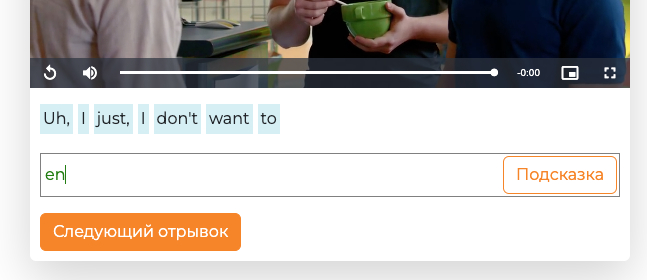 Смотрим краткий отрывок и в поле для ввода начинаем вводить то, что услышали.
