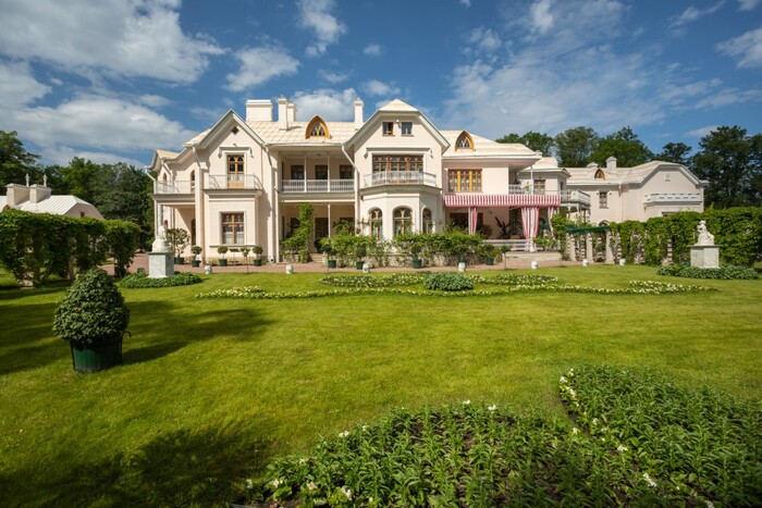 Фермерский дворец, построенный в 1831 году в парке Александрия в Петергофе, стал летней резиденцией для семьи Александра II. Дворец оформлен в стиле английского коттеджа. Выглядит вполне современно.