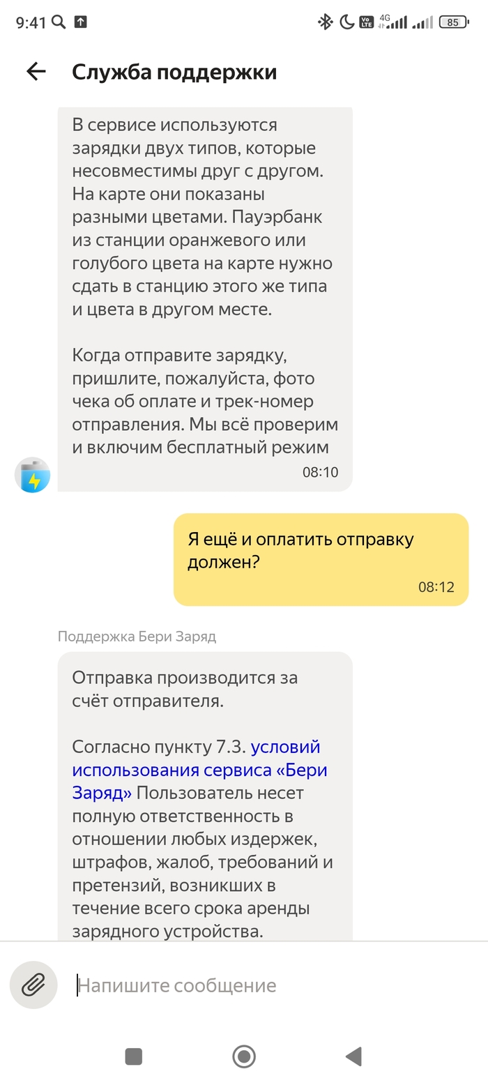 Время до вылета ещё есть - решаю сдать зарядку. Подхожу к станции того же привычного цвета, и выясняется, что устройство туда не подходит... Просто ячейка другого размера!!! Ищу следующую станцию - тоже не подходит... И вообще ни одна станция не подходит - это просто другой формат! Пишу в поддержку - и выясняется что действительно есть разные форматы и нужно искать станции голубого, а не оранжевого цвета.