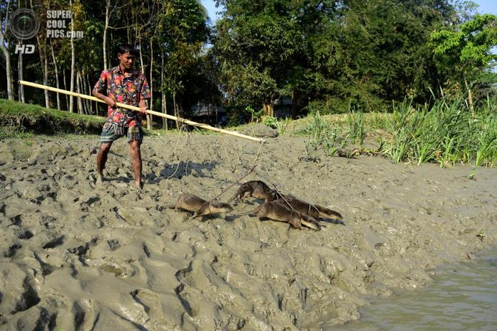 Фотографы получили снимки удивительной охоты — выдры охотятся на рыбу в Narail, приблизительно в 129 милях от Дакки, БаБангладеш.