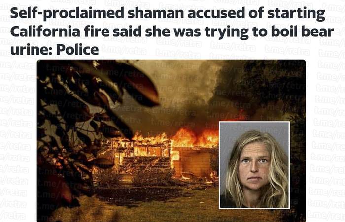 Калифорнийская «шаманка», обвиняемая в разжигании лесного пожара, который угрожает тысячам домов, утверждает, что пожар начался случайно — когда она кипятила медвежью мочу для питья.
