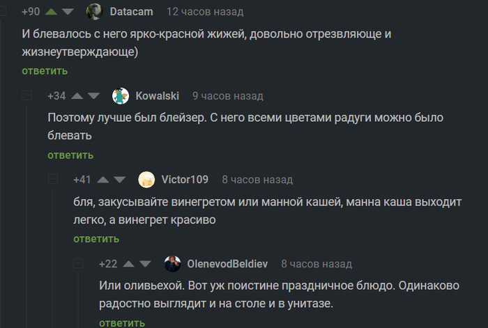 45 Maligaro 4 года назад Скриншоты комментов Домашние любимцы #comment_215676215 Скриншот Комментарии на Пикабу Юмор Кулинария Семья Ещё 0