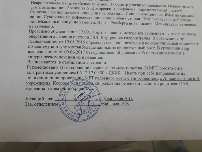 6 декабря мы с Маликой были записаны на проведение снимка МРТ головного мозга с контрастированием. Эти снимки мы делаем в Краснодаре,т.к. в Майкопе оборудование не айс. Пару раз делали тут,привезли результаты в Краснодар,врачи посмотрели и спросили-у вас снимки кисточкой что ли рисуют. Ну реально,все размыто-размазанно. Так что приходится мотаться в Краснодар. Но для этого нужно направление из нашей поликлиники. Мы стоим на учете у невролога. Ф.Б. женщина-загадка,никогда не знаешь чего от нее ждать. Я ее называю "кивала". Ну другой нет,так что приходится мириться. Ф.Б. боится всего. Когда Малика пошла в школу,она усиленно впаривала нам необходимость домашнего обучения,т.к. девочка плохо ходит из-за парализации. Но вы же из предыдущих моих рассказов поняли,что легкие пути это не про меня. Так что Малика все таки пошла в школу. А через 3 месяца она уже сама скакала по лестницам. Ф.Б. постоянно предлагает нам инвалидную коляску или памперсы, не хочет писать справки о возможности посещения бассейна,танцев,муз.школы и конной школы. Обычно после ее отказа,мотивируемого -да вы что! с ума сошли! какие лошади!(пение/плавание/танцы/и т.д.) я не знаю. ей же будет тяжело!
