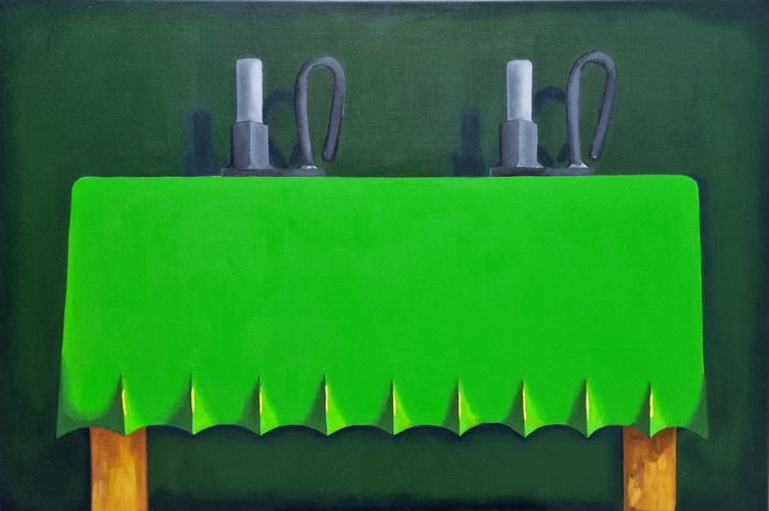 Расположила Все предметы в нижней трети что бы оставшаяся пустота вызывала тревожность и грусть.