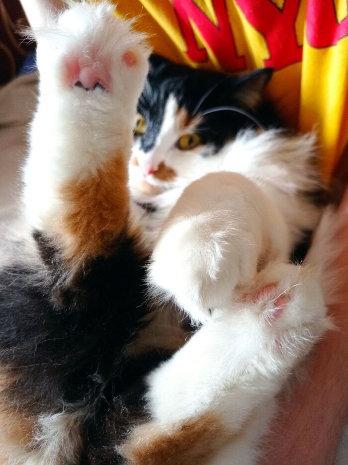 53 MamaMedveditza 2 года назад Котомафия Очарованье Я пушистая Котя с янтарными глазками. Могу делать "хоба!" одной лапкой. А могу и всеми лапками! Всем : хоба! Показать полностью 3 Трехцветная кошка Кот Домашние животные Длиннопост Лапки Мобильная фотография 1 Ещё 0