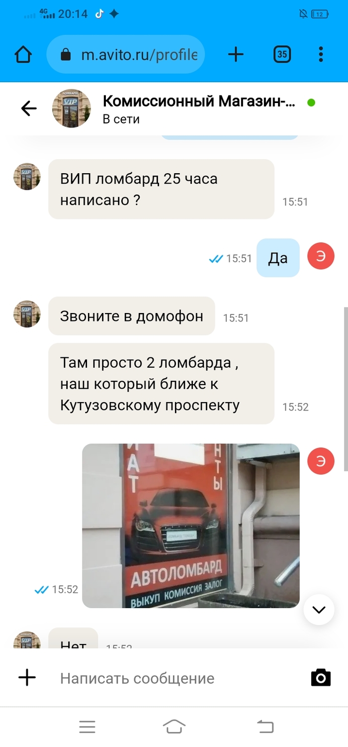 Некий " Ломбард VIP", расположенный по адресу: Москва, Кутузовский проспект 27, дает дает объявления на Авито, где по очень низкой цене (2500 за грамм 585) продает золотые изделия. Вчера я позвонила, уточнила по поводу 7(!)) изделий, чтобы с выбором, всё сказали, что в наличии, я приехала спустя 25 минут, а на месте мне, пряча глаза ( стыдно врать в глаза напропалую-то) сперва начали врать, что выкупили резко все, на что я резонно возразила, что в избранном именно их лотов у меня 572, я всю ночь мониторила, покупка планировалась двух изделий, но я выбираю себе хранить так деньги, чтобы не тратить на ерунду, поэтому выбирала просто по весу больше. И что, всех их нет? Парень за стойкой уже начал психовать, хамить, что по такой цене И НЕ БЫЛО НИКОГДА! Что таких цен давно нет, а ВСЕ эти изделия давно проданы. Тогда я сказала, пускай удалят их с сайта, не вводить в заблуждение покупателей чтобы, плюс зачем отвечают, что в наличии, если " давно проданы", на что он уже с пеной у рта стал возмущаться, что ' а вы докажите, что не только что всё забрали'.