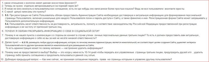 * Я никак не могу вникнуть в пользовательское соглашение, есть ли где нибудь оно написанное более простым языком? Ведь не все пользователи вконтакте юристы.