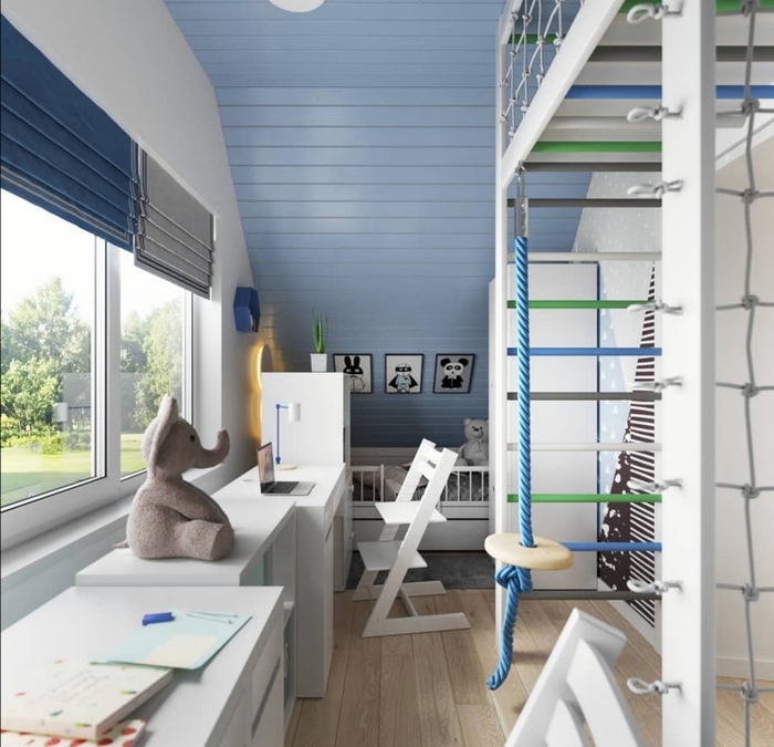 Решили, что спортивный уголок нам не нужен и хотим обойтись без дорогой мебели, сделанной на заказ, поэтому выбрали такой: