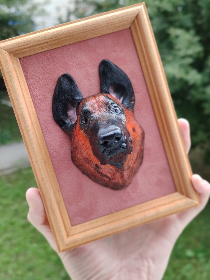 Делала на заказ первый раз в рамку, очень понравилось как смотрится портрет в рамке, думаю буду брать заказы еще. Материалы полимерная глина, акриловые краски, лак.
