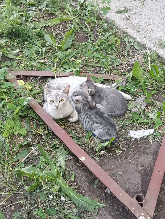 Подкинули к подъезду кошку с котятами, часть забрали, остались два пацана и сама мама. Может кто захочет забрать.
