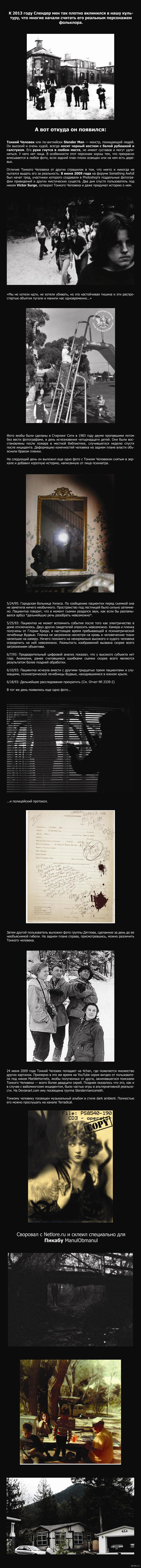 175 ManulObmanul Длинная история Тонкого Человека. 12 лет назад Показать полностью 1 Слендер Длиннопост