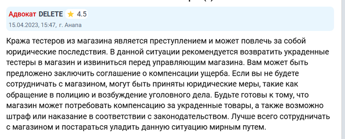 Зашла, кстати, посмотреть профиль блогера и поняла, что там далеко не одно такое видео. Подходит и к девушкам-консультантам, “знакомя” их с покупателями, и не только к работникам “Золотого яблока” - например, есть видео из магазина одежды. Потом намеренно провоцирует человека фразой “Кто шевельнется, тот г@й”. Всё строится на провокации, и чем больше люди не реагируют, тем наглее и настырнее становятся каждое следующее видео. Так хотелось в моменте, чтоб он на какого-нибудь качка-кавказца напоролся…
