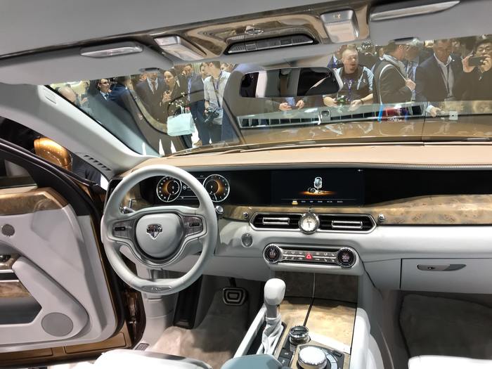 Интересен также имиджевый момент. К примеру, изящные часы на передней панели заказали российскому предприятию. Качество высочайшее, все параметры соответствуют запросам, но вот беда: позиционирование бренда ассоциируется с массовым рынком, нельзя ставить в люксовый седан такой ширпотреб — клиент не поймет. В итоге название фабрики пришлось убрать с циферблата. То же самое случилось с кожей — она российская, из Рязанской области. Но эту гордость не все поймут...
