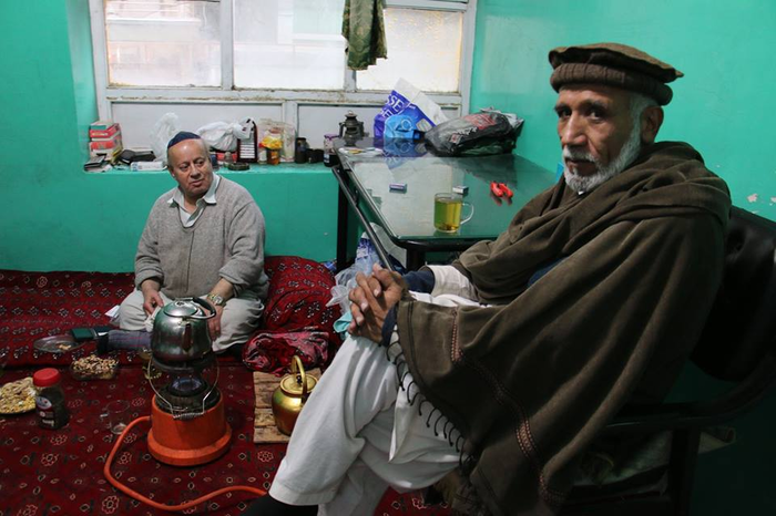 59-летний Забулон Симинтов встречает меня в прихожей синагоги рядом с центром Кабула. Здание изрядно обветшало, стены покрыты трещинами, под ногами пыль. В комнатке на газу стоит древний чайник, со мной здоровается старик-афганец: сосед, зашёл в гости. Забулон первым делом интересуется, принёс ли я водку: «Это моё единственное развлечение». Жалуется, что на улице часто происходят теракты: «Взрывы постоянно, стёкла двадцать раз вставлял уже». Он разговаривает со мной по-русски (выучил немного во время ввода советских войск в Афганистан), но затем переходит на местный диалект персидского — дари.