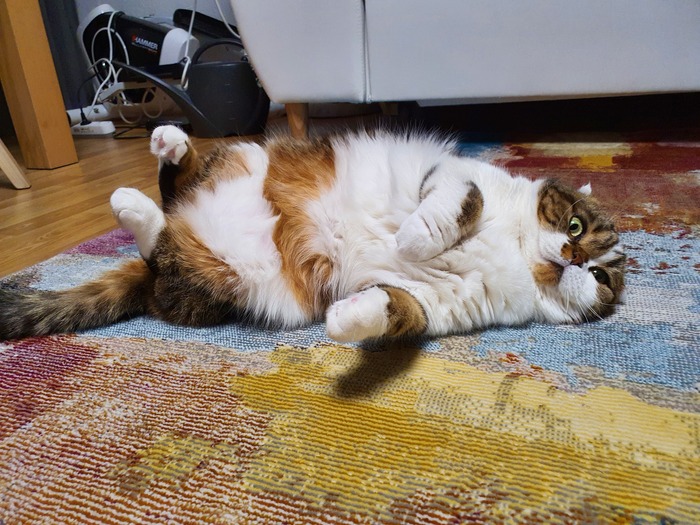 Жирное же шотландское пузико наотрез отказалась от этой затеи - уж больно дикой и шумной ей показалась эта затея, так что она продолжила охранять ковёр.