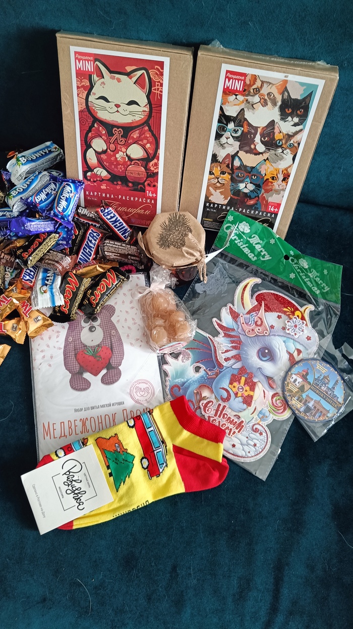 Общий вид даров, которые прятались в коробке:)