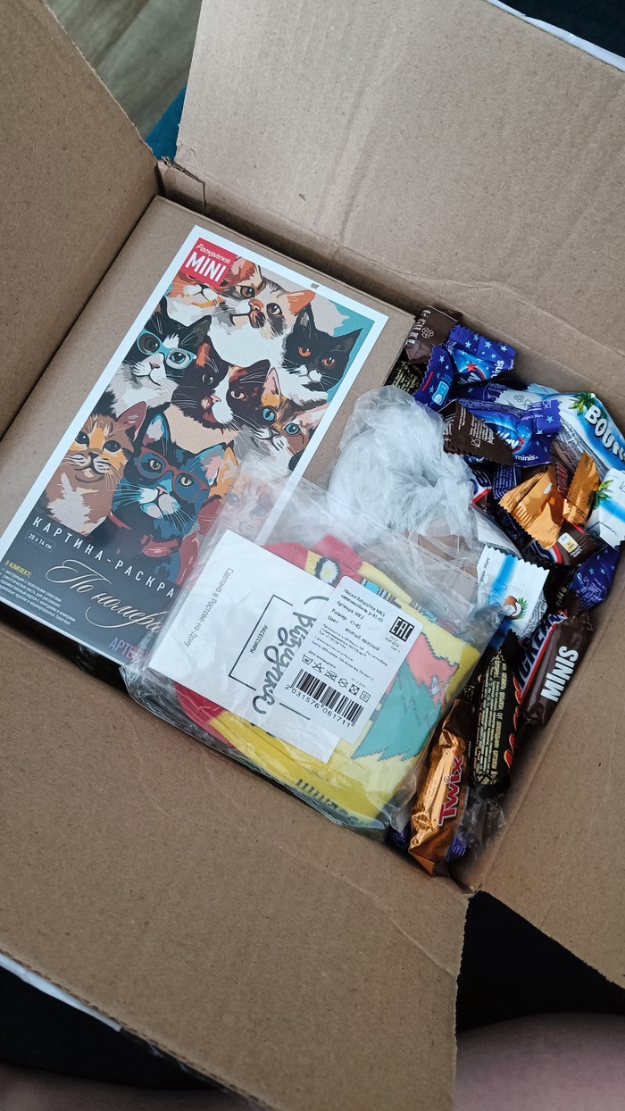 Открыв коробку, я увидела кучу конфет и кучу котов🐱