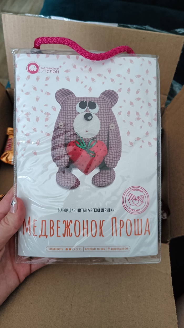На дне коробочки нашелся еще вот такой мишка🐻 шить я не особо умею, но как раз будет повод подучиться:)