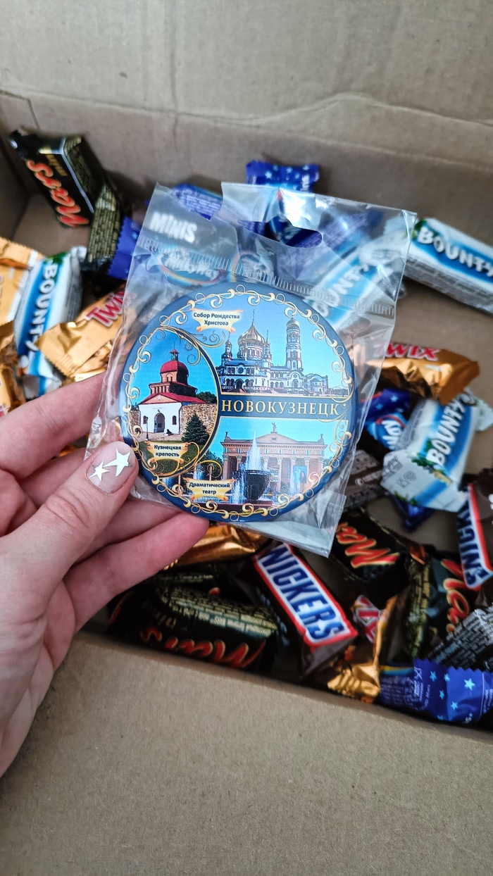 Среди конфет очень хорошо скрывался магнитик, но был обнаружен:)