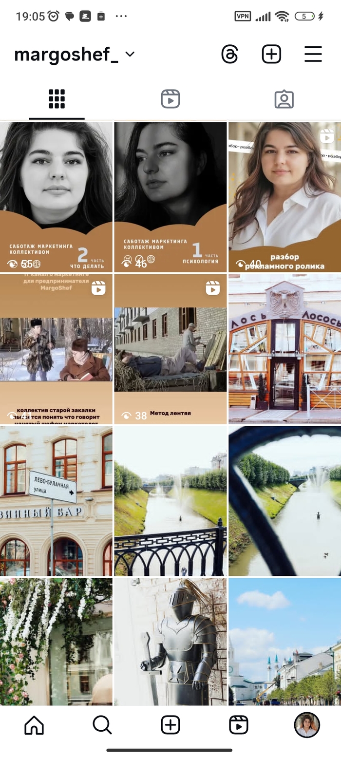 Переделала ленту в запрещеграм — это только набросок, в моих цветах. В будущем сделаю обложки к видео и статьям по маркетингу.