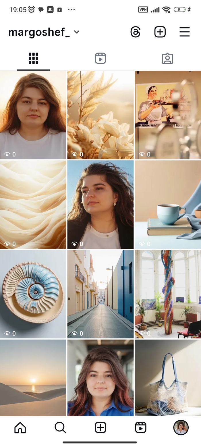 8. Отряхнула пыль со своего запрещенограма с 10 подписчиками. Не заходила туда с 2018 года. Провела чистку: убрала всё лишнее, оставила только свои фотографии города, очень уж они мне нравятся и по цветам подходят. Завела Threads — это мой полигон для текстов 🙌. Потестировала несколько описаний и форматов, прикинула, как буду писать. Начала набирать подписчиков. Завела как дубль каналы Сетку и Дзен