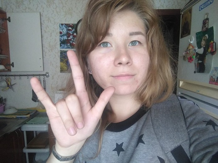 Мне понравился типаж девушки - азиатский разрез глаз, и при этом голубые глаза и светлые волосы. Ну а "коза" задала тон идее и портрету в целом. Звезды с толстовки я тоже использовала, но в целом переделала ее.