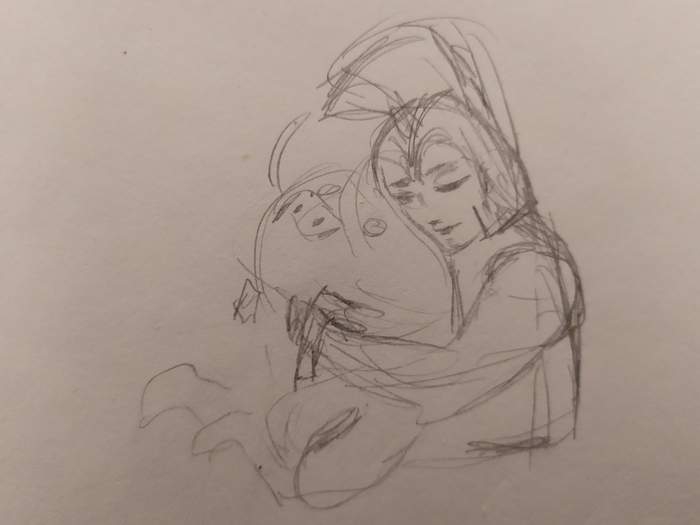 Процесс. Обычно рисую сразу в программах, но комп был занят, поэтому нашкрябала на листочке идею чтобы не забыть.