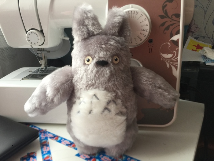 Тоторо сшит из искусственного меха, набит синтепоном, глаза,нос и когти- полимерная глина