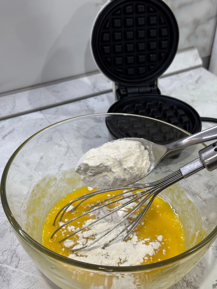 Орешницу разогреваем. Если у вас орешница для плиты, то прогрейте её с обеих сторон на среднем огне и убавьте немного огонь. Смазывать орешницу не нужно, количества масла в тесте достаточно, чтобы скорлупки не прилипли к форме.