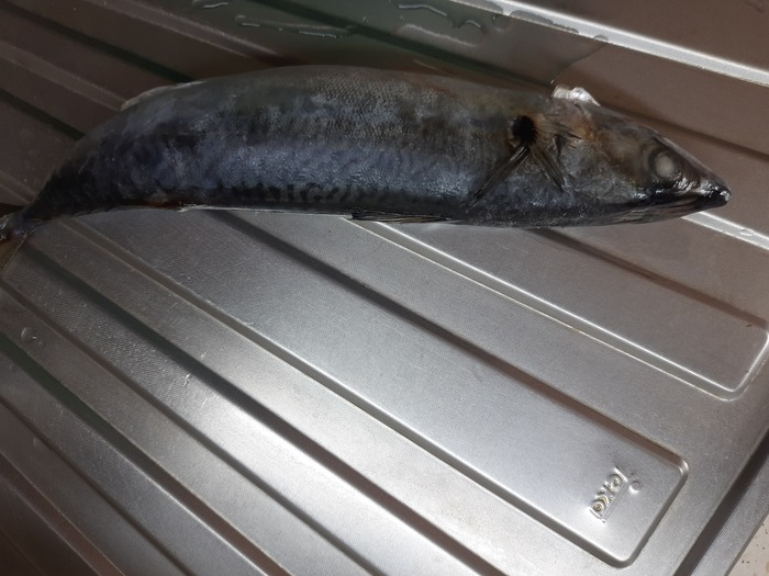Вкусная скумбрия с яркими полосками/пятнами на спинке