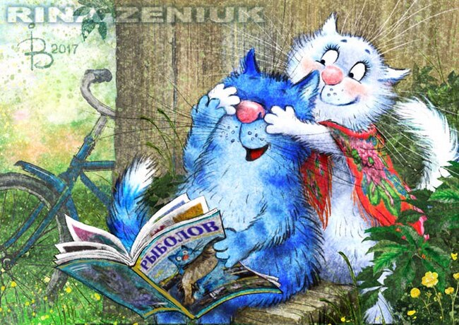 Приветствую всех рукодельниц и рукодельников. Сегодня у меня синие коты по мотивам иллюстраций белорусской художницы Ирины Зенюк. Многие из вас, конечно же, знакомы с этими забавными жителями села Котофеевка)