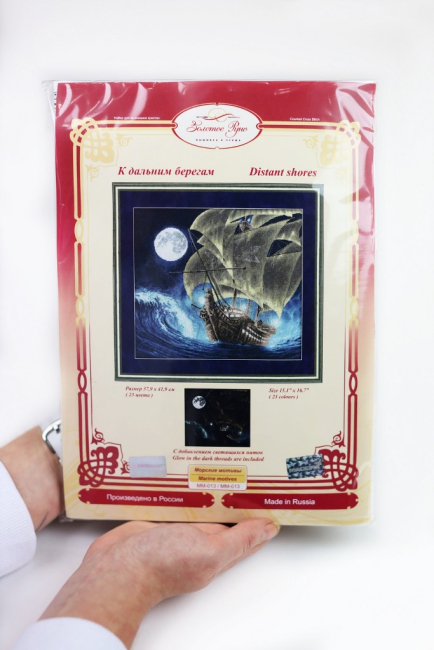 И так. На очередной день рождения подарили мне шикарнейший набор от Золотое Руно "К дальним берегам" со светящимися нитками и металликом.