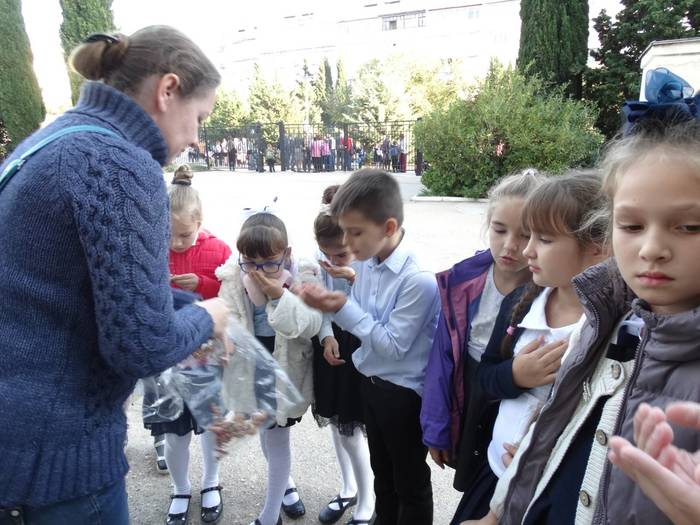 Со старшенькими любителями природы(страшие несчастные дети) пришли повторно и немного убрались (побесились). Накормила конфетами со Дня учителя (столько одной семье не съесть).
