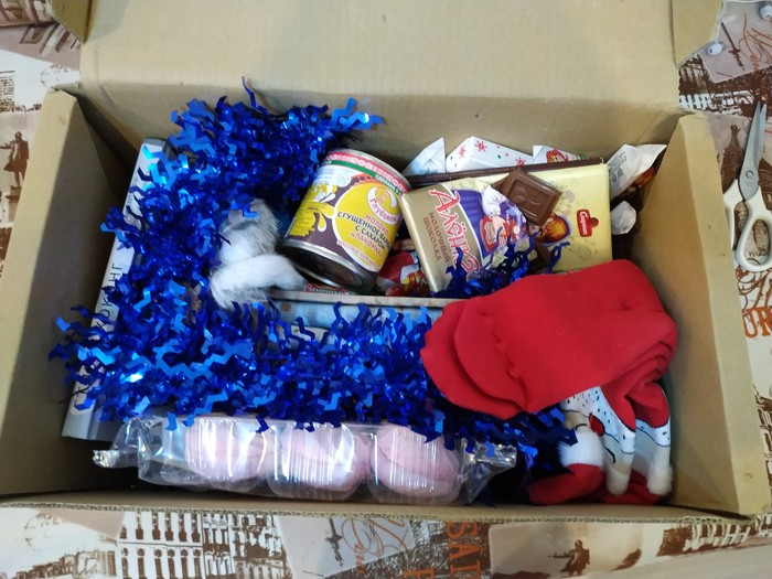 Вот и мы получили нашу заветную посылочку, аж на 3+ кг. Наш дед мороз живёт в одном городе с нами. Пришли на почту за 30 минут до закрытия, народу тьма, окончание очереди на улице, думали не успеем, но нам повезло и работники обслужили всех. В 20.15 держала в руках посылку.
