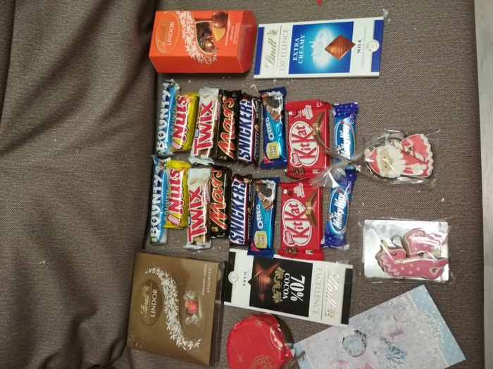 Шоколадки, много шоколада, люблю все их, но Lindor мои любимые, особенно с апельсином. И баночка варенья, ее мы попробуем позже.