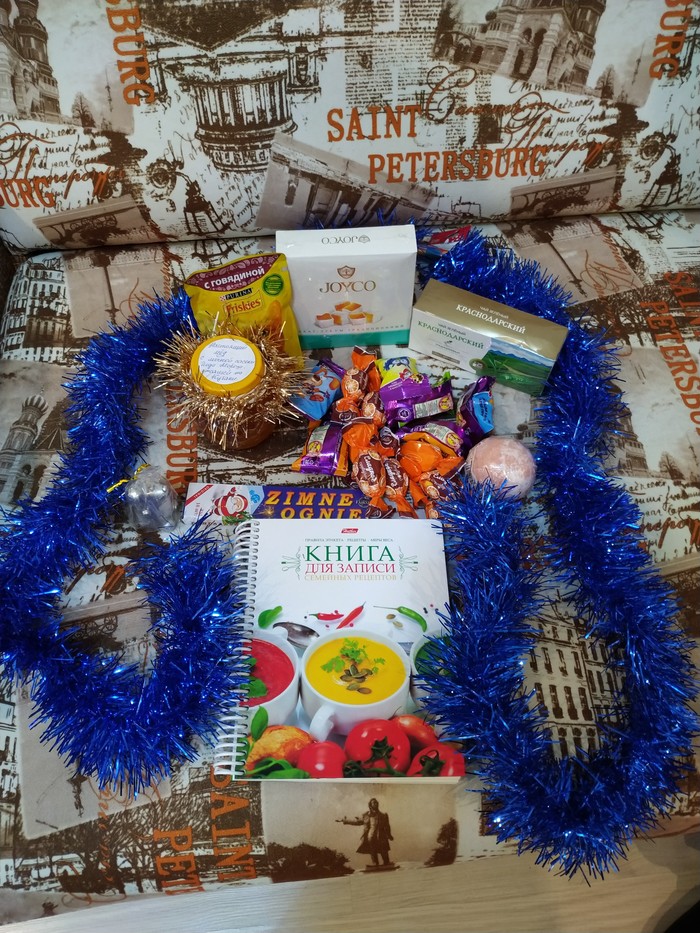 Дед Мороз, точнее Снегурочка из Краснодара, спасибо за новогоднее настроение, книга для рецептов прям крутецкая, обалденный мед (уже попробовали, очень ароматный). Жаль не было магнита из твоего города.