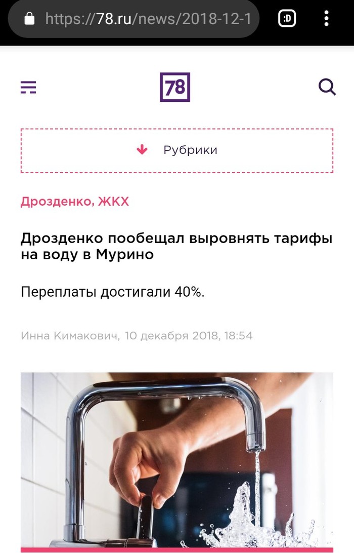 б) Сейчас март, можете догадаться, снижены они или нет) 😁 Кстати, жители требовали их снизить и у губернатора, и в органы обращались не просто так, а потому что в этом районе используется вода Водоканала-СПб (из Невы), которая стоит 30 руб./м3 (это указано на сайте Водоканала), а в счетах людям приходит 60 руб./м3, ресурсоснабжающей организацией правительством ЛО названа частная "УК Мурино" (принадлежит участнику рейтинга миллиардеров "Делового Петербурга", крупнейшему лендлорду ЛО и, по слухам, другу Дрозденко, А.В.Березину, который, тем не менее, владельцем Невы пока что не является).