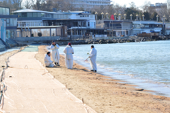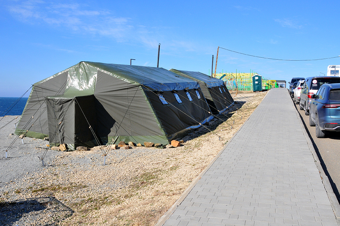 Единственное, что сказало мне о происшедшем, так это развернуты палатки штаба по ликвидации происшедшего. В общем и целом. Мазутом не пахнет. Запах моря и водорослей. Как и должно быть.
