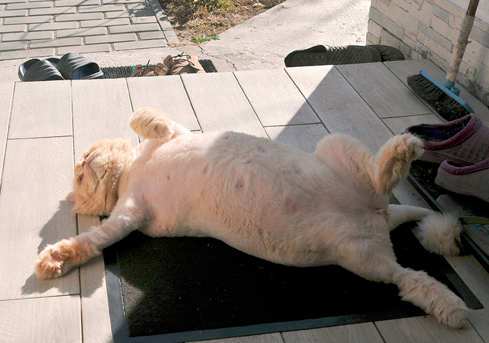 Потом уже и шлейку купил и ошейник с GPS/- не..как одеваешь.. лежит или ползает. Дома еще второй товарищ есть. Так тому все до фени. Вышел на улицу и душа спокойна. Травку пожует, степенно походит и сам в двери идет. Этот шотландец. Длинноухий и длинношерстный. Вот, это нормальный кот. А эта бестия, то мышь притащит, то воробья. Вот те и порода ))) Одно слово- дикая.