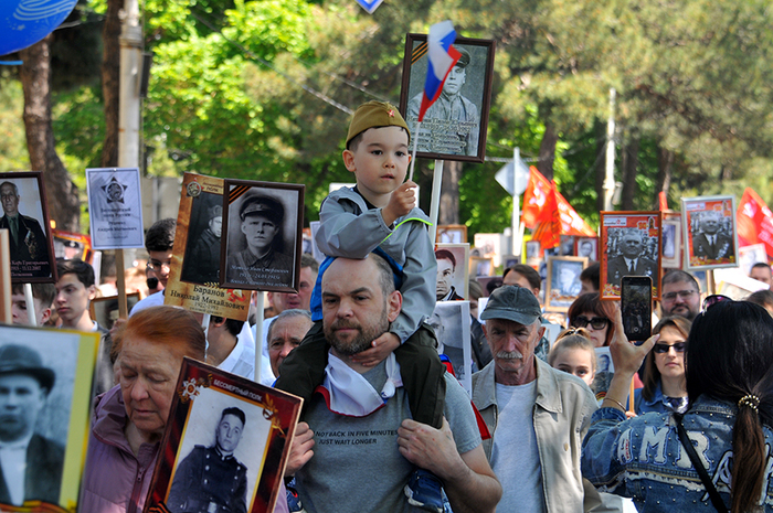 Сегодняшнюю серию хочу посвятить серии фотографий посвященных 9 маю и шествию Бессмертного полка. В Анапе, в этот день все выходили на улицу, и такая традиция и сплоченность была всегда. До 2023 года.