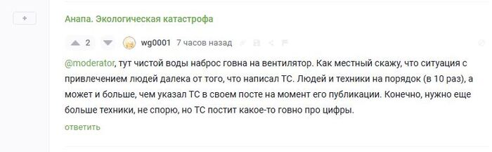 Она вошла в топ за 2 часа после публикации. Мне это не важно. Топ не топ. Плюсы и рейтинги мне не интересны. Это говорит только о том, что форумчанам она не безразлична. Один из них написал, что зашел засвидетельствовать свое участие и посмотреть, через, сколько времени удалят тему. Еще подумал, с чего бы? Без политоты, заявления властей в форме цитат из СМИ. Цифры озвучены губернатором. Сам там был и видел, что происходит. Это было начало. Блага, пляж. Корректный текст. Мата нет. Однако прав был соклубник. Снесли. Утром. Без пояснения причин. Впрочем, она есть «Недостоверная информация».