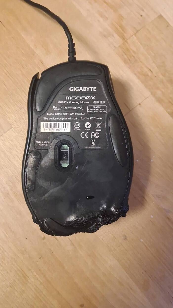 Мужик с Реддита рассказал, что его девайс загорелся без видимых причин — да так сильно, что прожег стол и мог спалить все жилище.