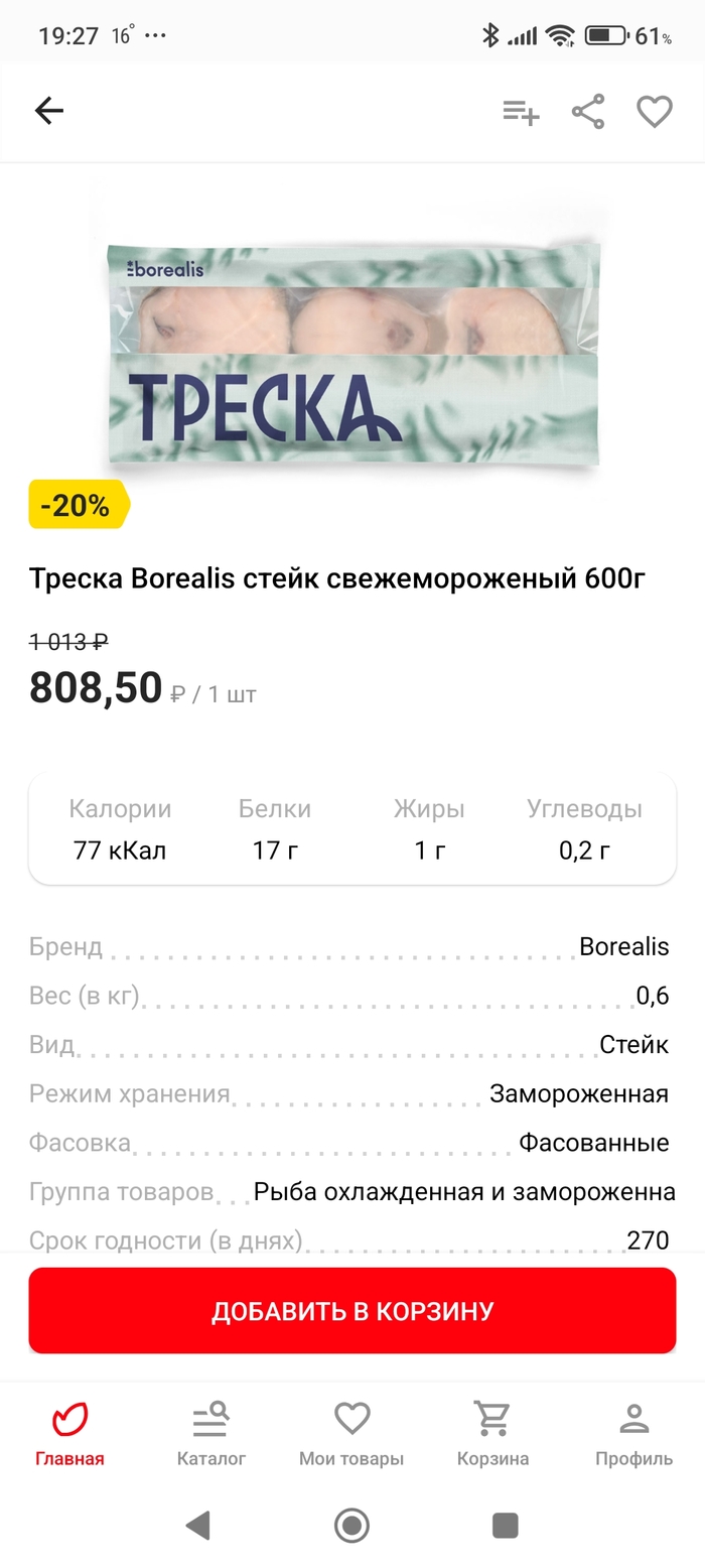 и знаете,что? Она почти угадала!!! 1600 рублей за 2 упаковки замороженной трески по 600 грамм. Это пиздец КМК. Её в космосе ловят?