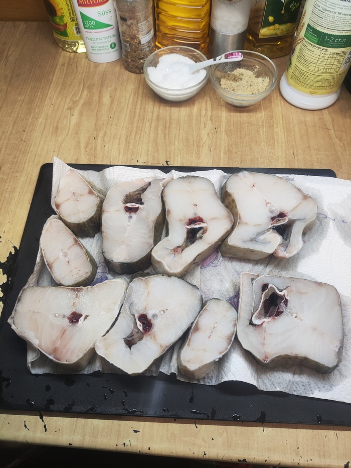 Она спросила,как думаете,сколько это стоит? Уточнив,что это 2 упаковки трески примерно по 600 грамм, в замороженном виде.