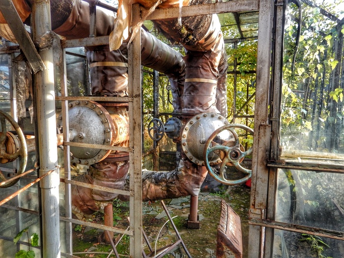 Воспоминания... Всепоглолающие, терзающие. Как трясина, как болото. Этот тепличный комплекс вызывает радость и опустошение одновременно, как воспоминания. Пронизывает до нитки, как тропический дождь. Сотни погибших растений, тысячи умерших воспоминаний. Теплицы эти насчитывают около сорока штук, все имеют корридоры и ходы, как в фильме о Гарри Поттере. Технологии их были вовсе не из простых и в каждой теплице юыл свой микроклимат и система полива растений. Так же в них можно увидеть полки с ядохимикатами и разными порошками.